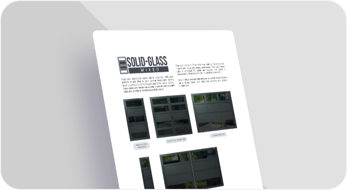solid-Glass Your gate can be outfitted with clear, white, or black glass to MIXED match your home and privacy preferences. Your glass series gate is laminated for safety and security. This series is Glass and Aluminum series can be designed with glass guaranteed to draw attention with no sacrifice to security. accents to add flair to your gate or large glass panels, As with all our products, this style can be custom fit and installed creating a beautiful reflective gate perfect for added privacy. on a sloped terrain with additional planning and product Glass gates and fences are a great choice to raise property engineering. value and provide an instant upgrade in beauty! Pedestrian Gate Double Swing Pedestrian Gate Driveway Sliding Gate Single Swing Panel Single / Double Swing Driveway Gate VISIT on the website Alumalock Bar Handle Latch LaMtchotor Gates Design Collection 32